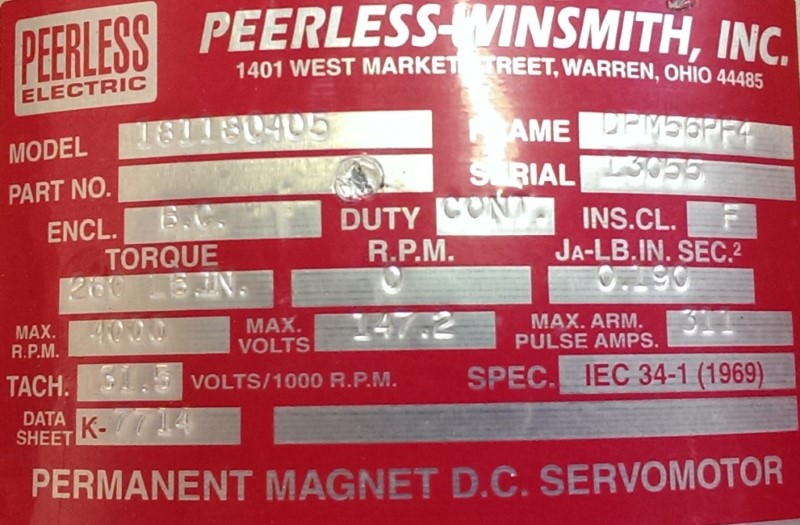 PEERLESS DC SERVO MOTOR, MOD# 181180405
