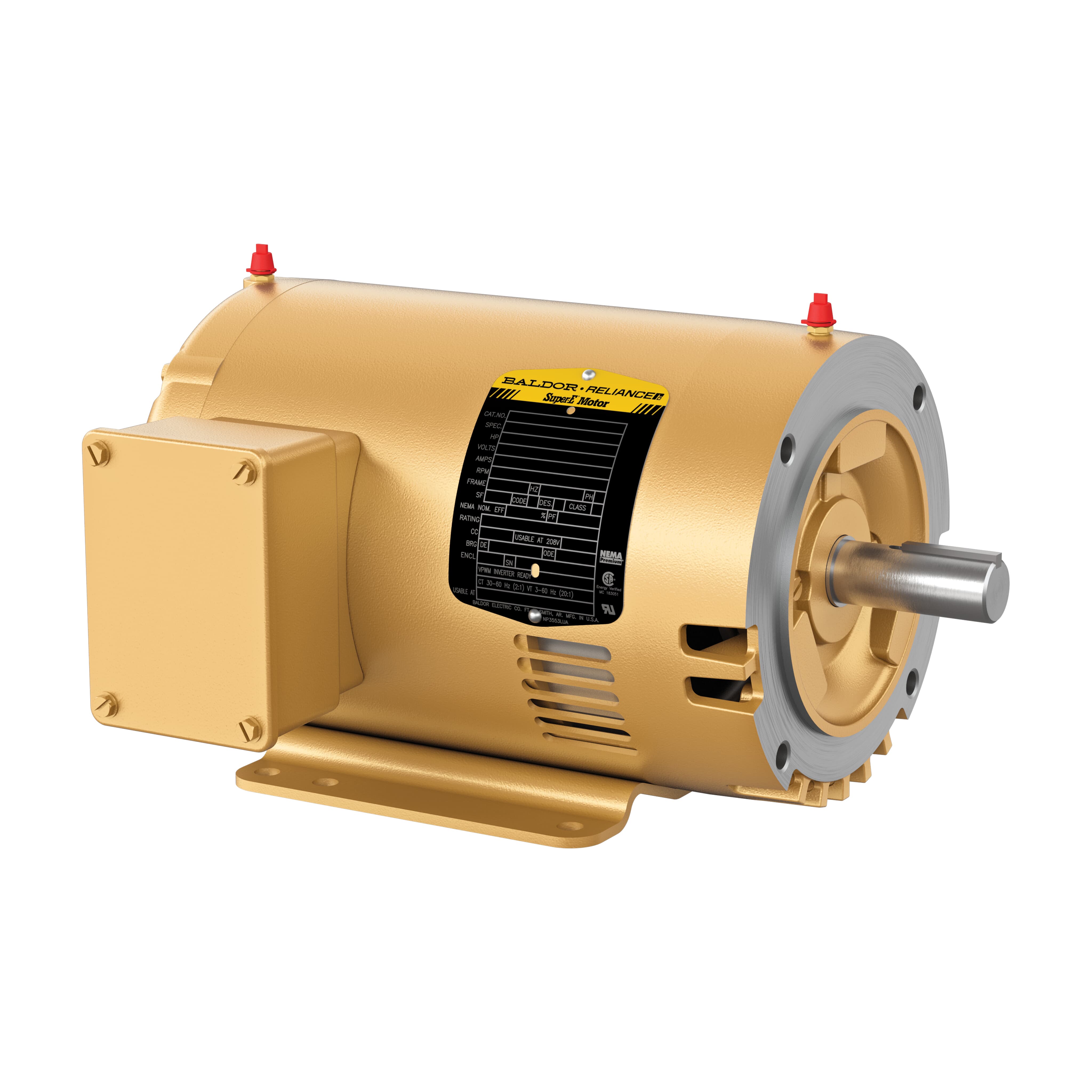 60 Hz designs with 50 Hz information on 2,4,6 pole 1-125 HP ratings, Suitable for inverter use per NEMA MG1 Part 31.4.4.2 unless 38 is indicated, Simple F1 to F2 conversion on cast iron frames, Designed for longevity with a 3 year warranty on NEMA premium effecient motors
